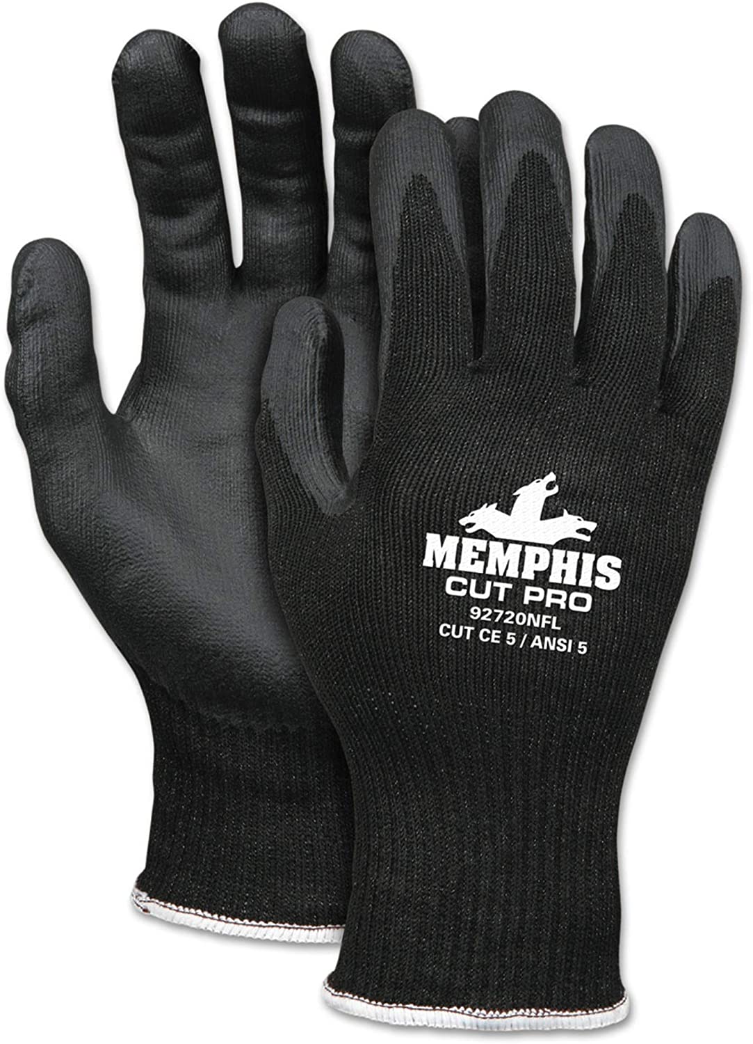 MCR Safety 92720NFL Memphis Cut Pro Gloves, 10 Gauge Black HPPE, Black Nitrile F