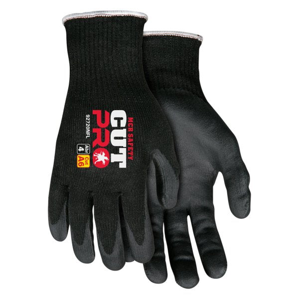 The MCR Safety Cut Pro Series offers various cut protection levels at a competitive price. The 92720NF cut resistant work gloves feature a 10 gauge HyperMax shell.The shell is coated on the palm and fingers with soft black nitrile foam. The black color hides dirt and grease well and keeps the gloves looking new.