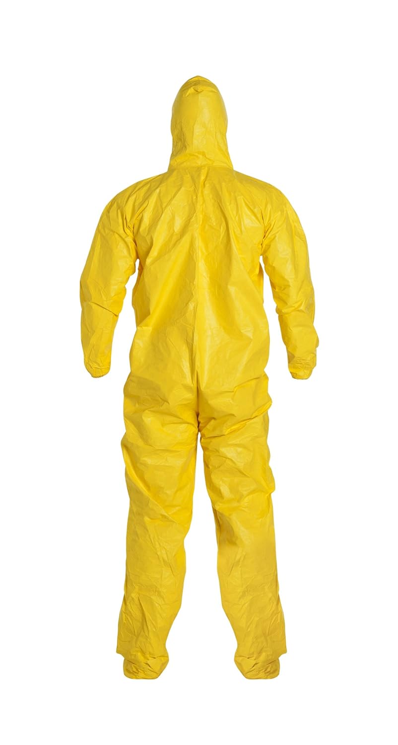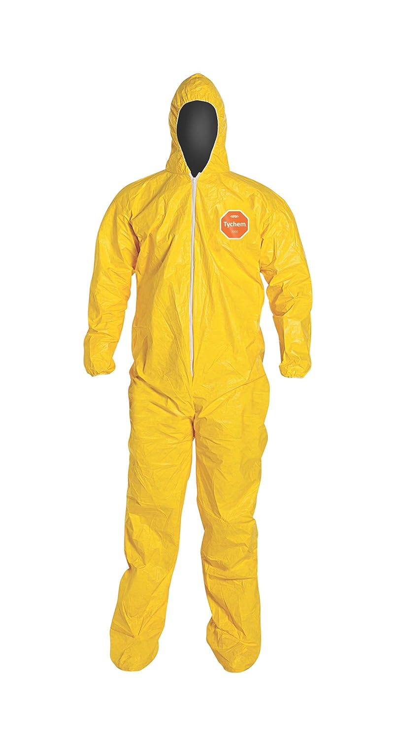 Dupont™ Tychem® 2000 (Formally Tyckem QC) Disposable Zipper Front Coveralls with Standard Fit Hood, Elastic Wrists & Back, Attached Socks, Serged Seams, Yellow