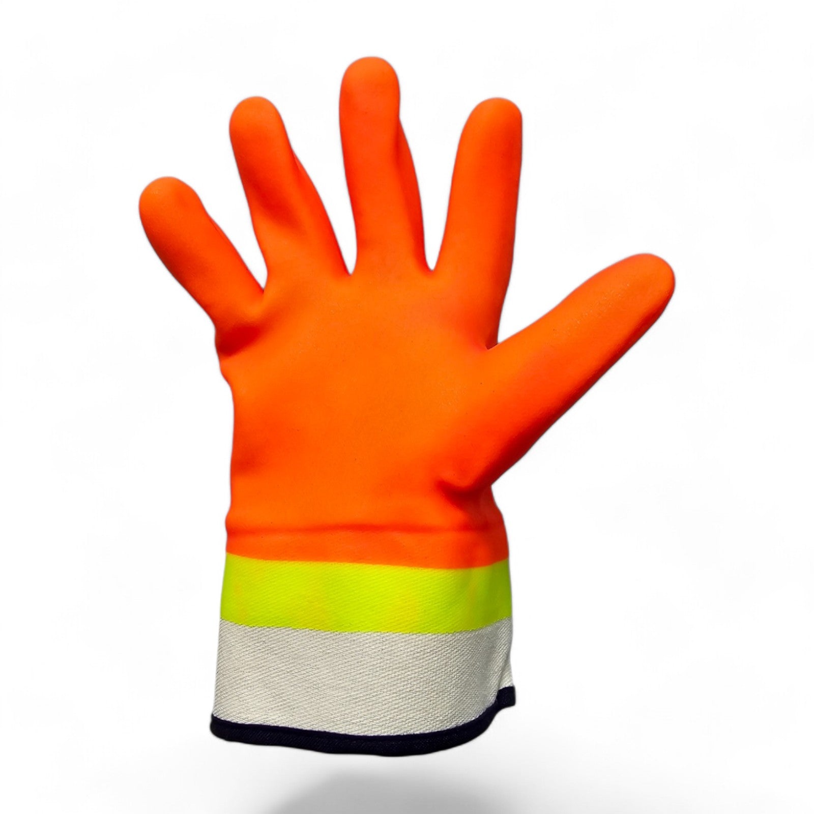 • Be Seen, Be Safe: The hi-vis orange over hi-vis lime double-dipped PVC coating makes these gloves impossible to miss, keeping you visible and safe in low-light or high-traffic areas.