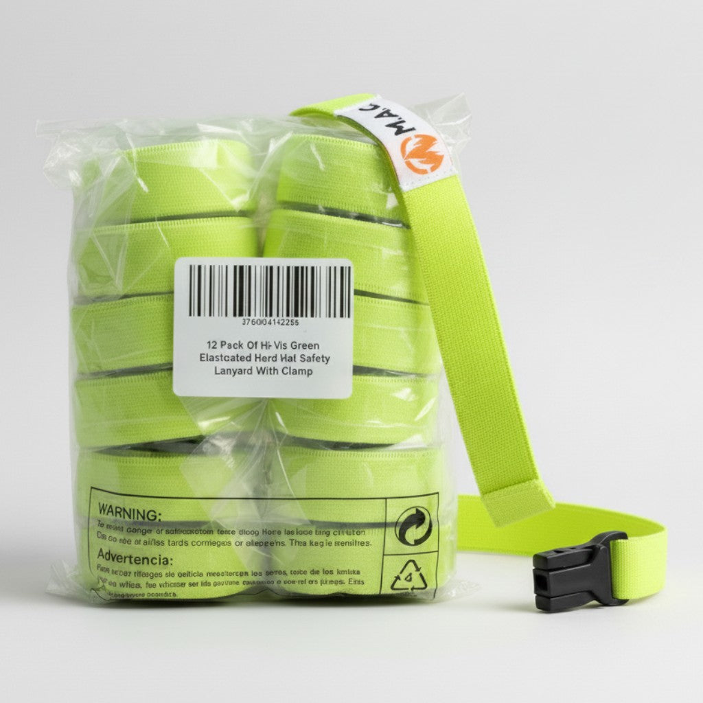 Hi-Vis Green Elasticated Hard Hat Safety Lanyard With Clamp