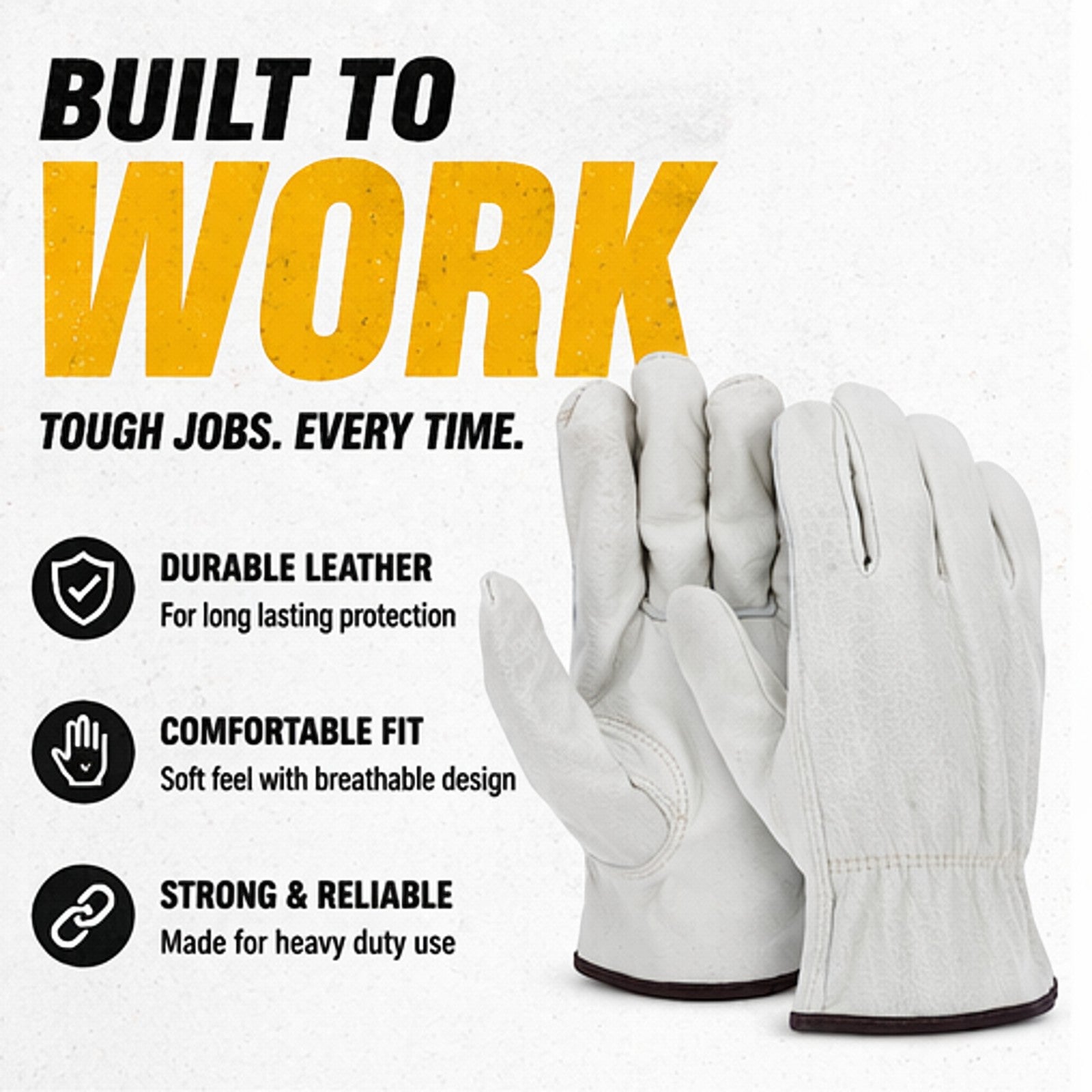 Heavy Duty Cowhide Leather Driver Work Gloves 12 Pairs