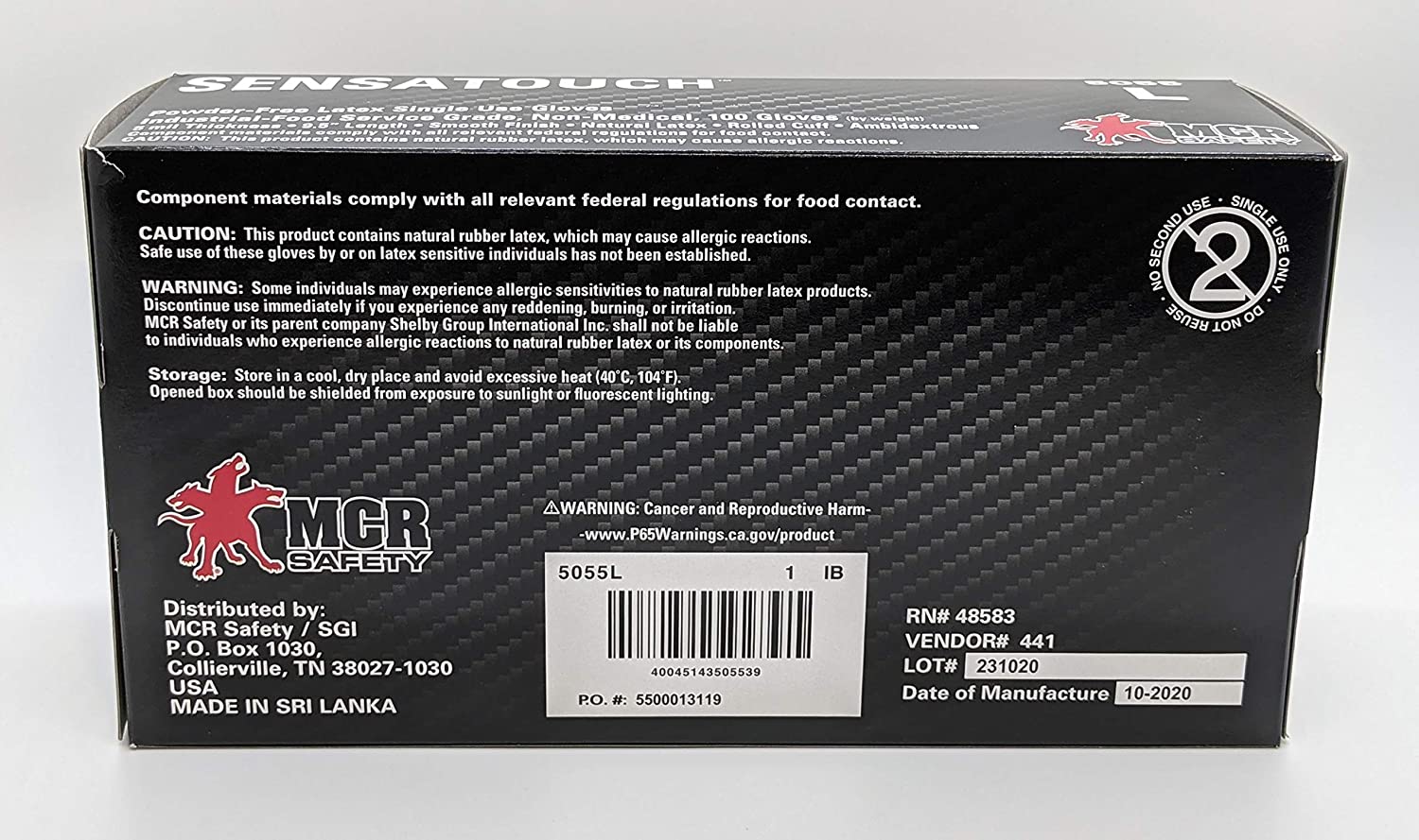 Rubber latex is, by its very nature, a natural substance. The natural rubber latex polymer used in the manufacture of natural rubber gloves is a biodegradable material that is inherently antimicrobial and antibacterial. The SensaTouchââ€Å¾Â¢ latex 5055 features 5 mil thickness, industrial food service grade, smooth finish and is powder free. These products contain natural rubber latex which may cause allergic reactions in some people.