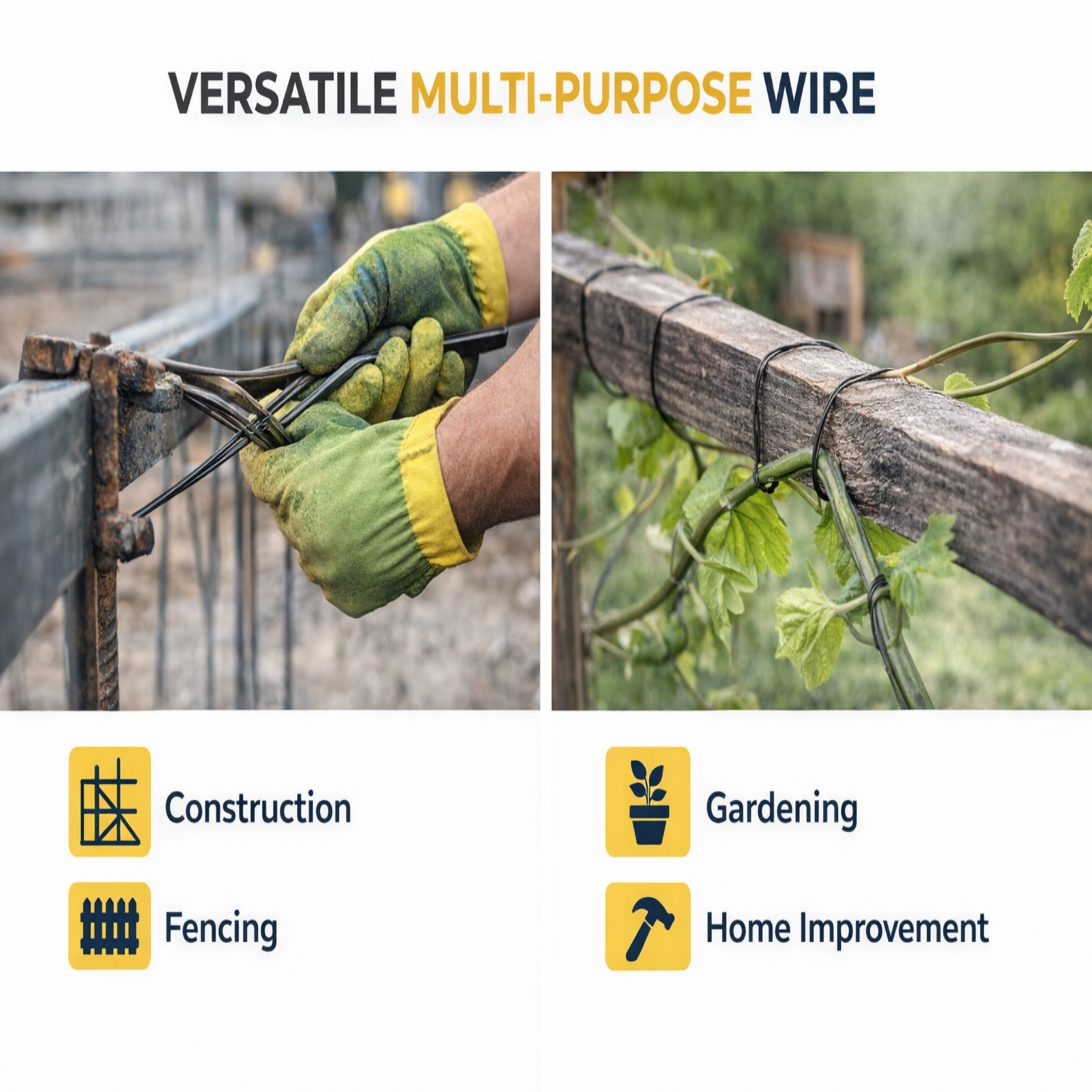 Supplied in a 100 lb coil, this wire provides extended use for large projects and continuous applications. It is ideal for binding, bundling, and bailing tasks across construction sites, farms, and various utility applications.