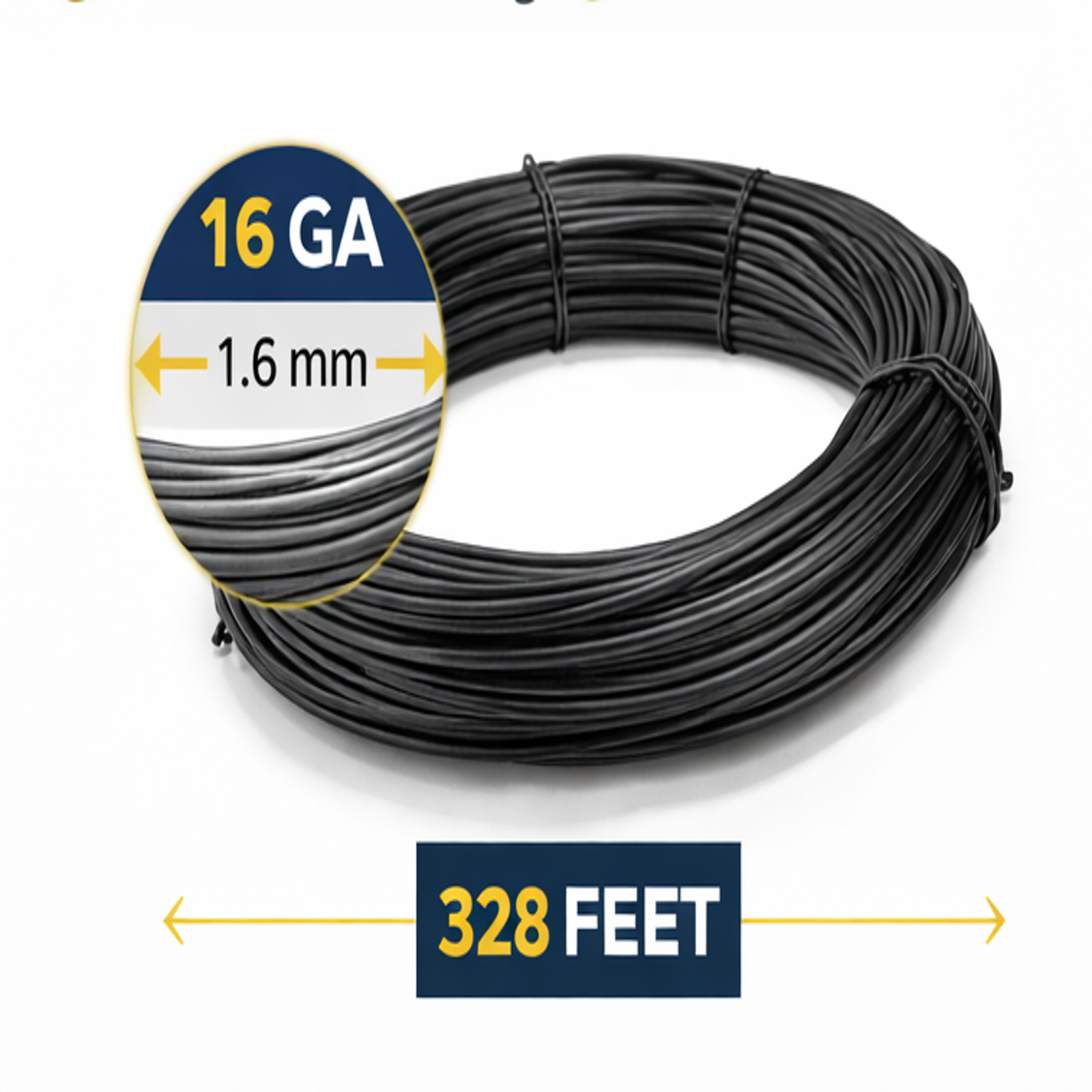 The 9 Gauge Black Annealed Steel Wire comes in a 10 lb coil and is designed for a variety of industrial, agricultural, and general-purpose applications. Made to be softer and more flexible than standard iron wire, it is easy to handle for binding, tying, bundling, and baling tasks. Its annealed finish helps improve flexibility while maintaining dependable strength for everyday use.