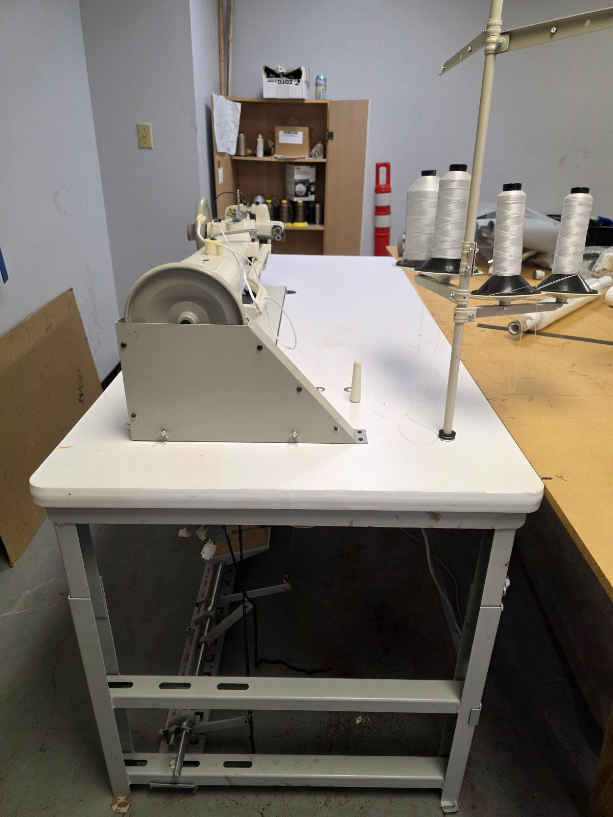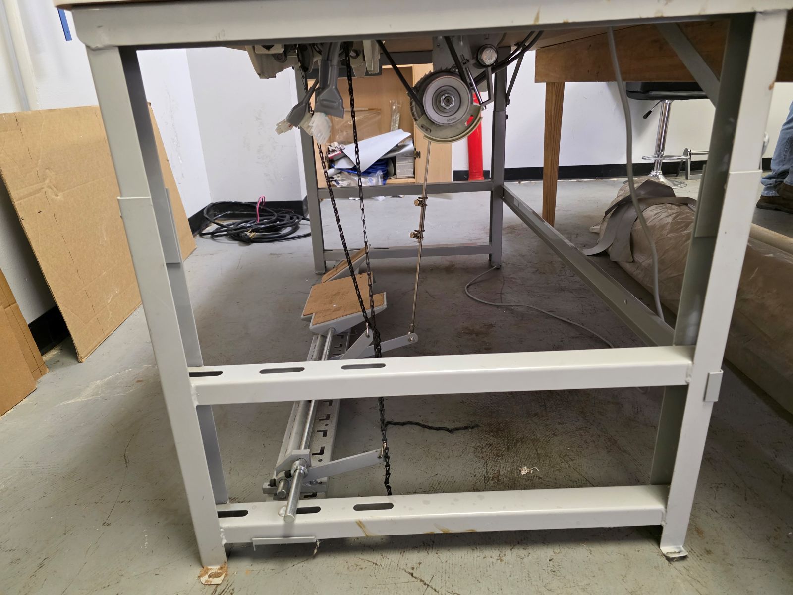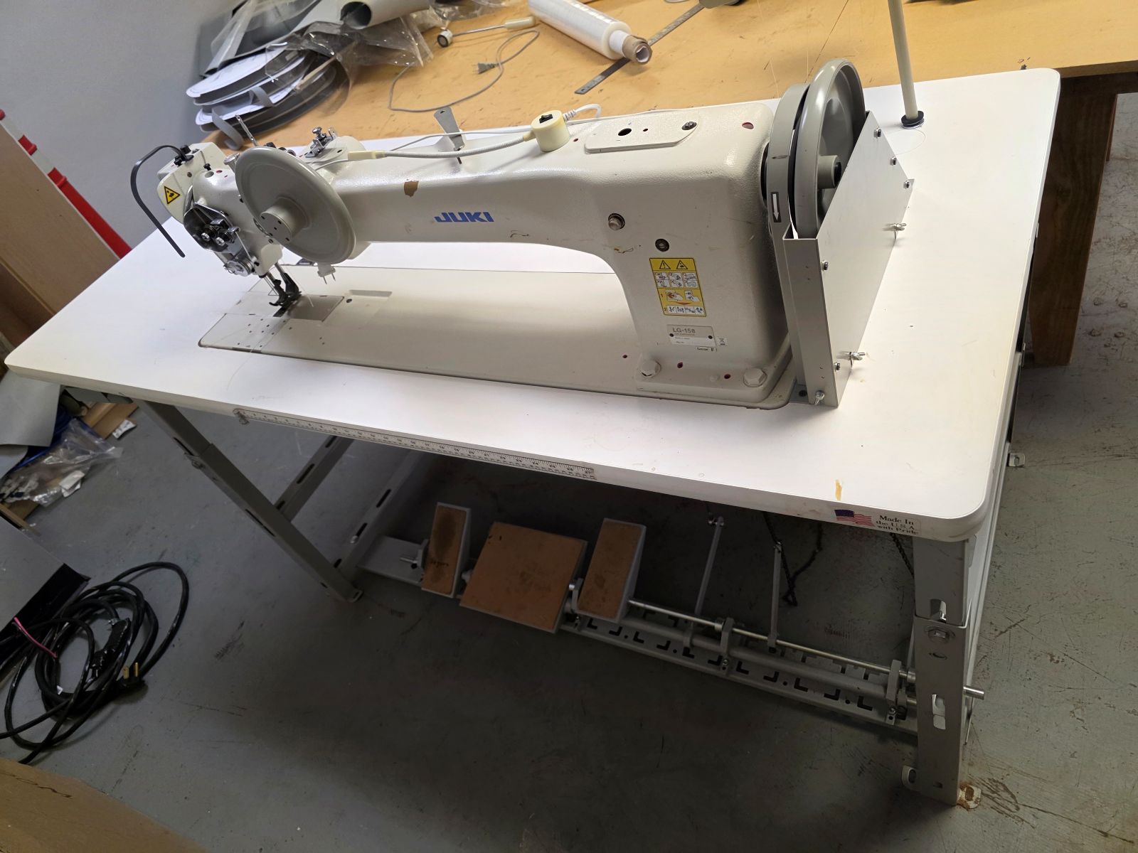 Used JUKI LG-158 Heavy Duty Long Arm Double Needle Sewing Machine, 30" Arm, Includes Table (No Servo Motor Included)